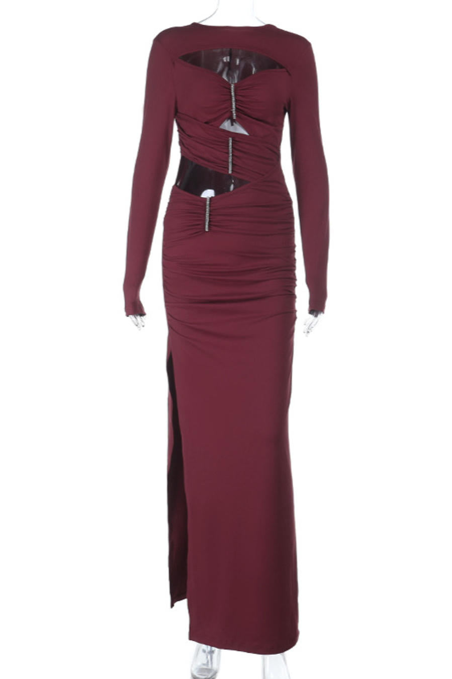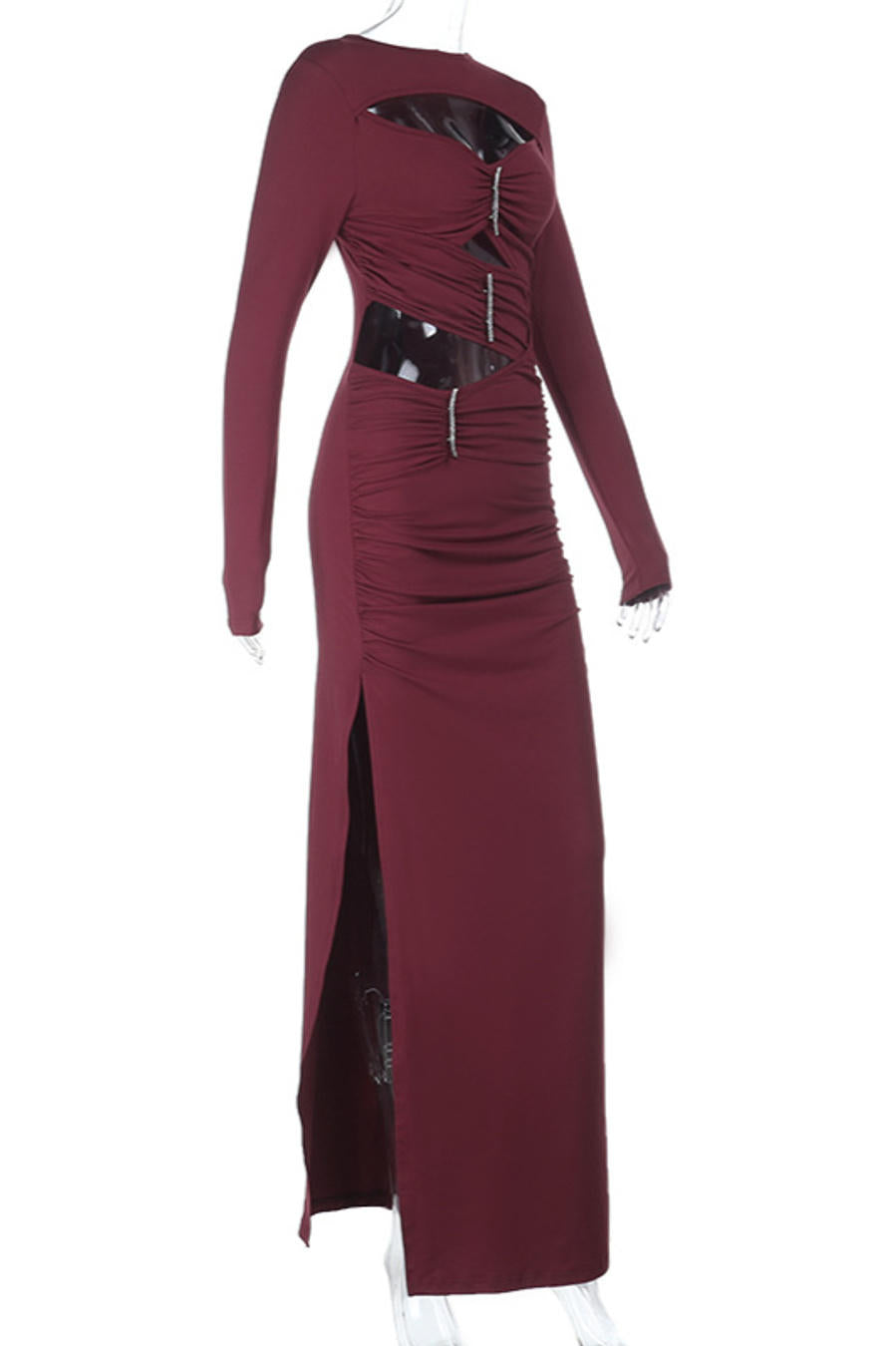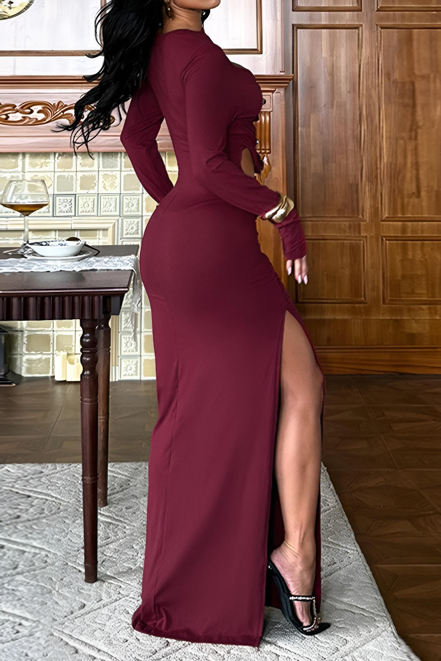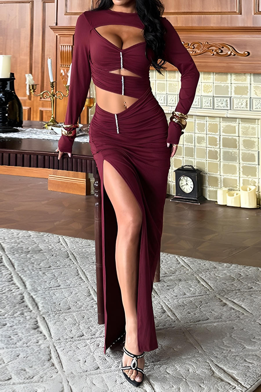 This piece doesn’t follow rules,it rewrites them. Cut-outs trace the body like whispered intentions, revealing confidence in motion. The night bends around her presence, unable to look away.