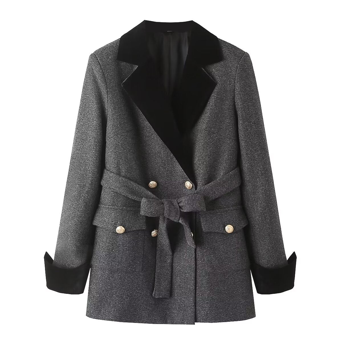 Tailored perfection with a hint of strength, the Moonstone Grace jacket combines plush wool texture with sleek velvet contrast. Golden buttons add a regal touch, making it a must-have for evenings of quiet confidence and timeless style.