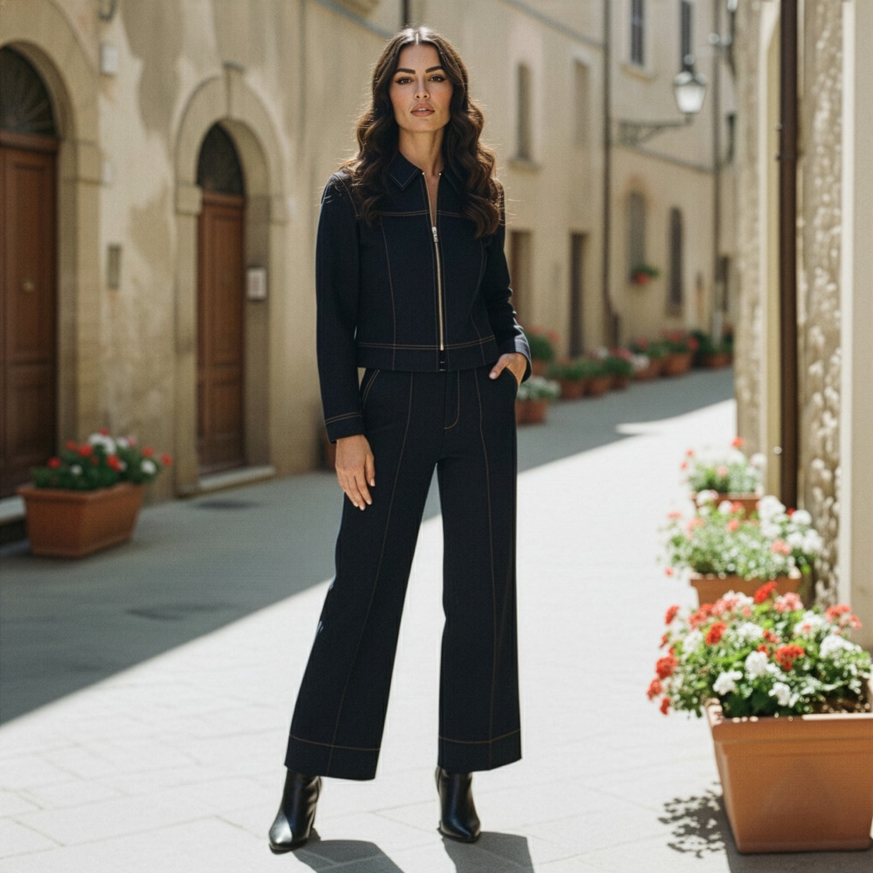The Twilight Curve set radiates effortless allure. Dark hues meet subtle stitching in a structured yet soft design, made for cool evenings and confident steps. A versatile piece for women who balance elegance with edge.