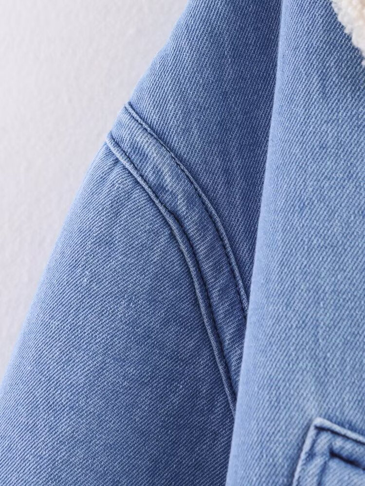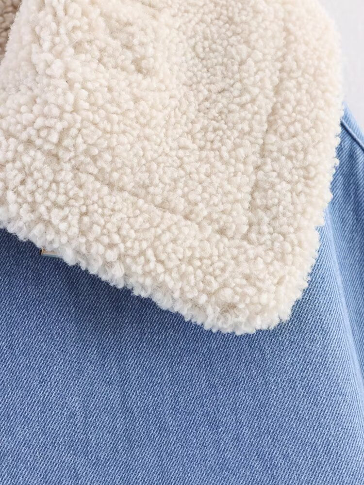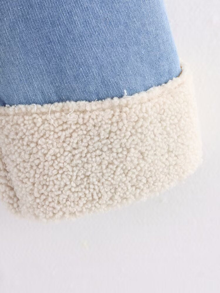Soft blue tones meet cozy warmth in the Frost Whisper jacket. With its plush sherpa collar and cuffs, it wraps you in comfort while keeping an effortlessly chic edge. Perfect for mornings that start with a chill and end in style.