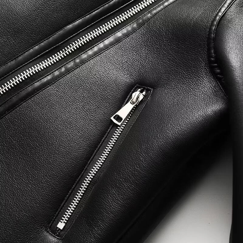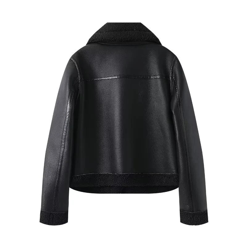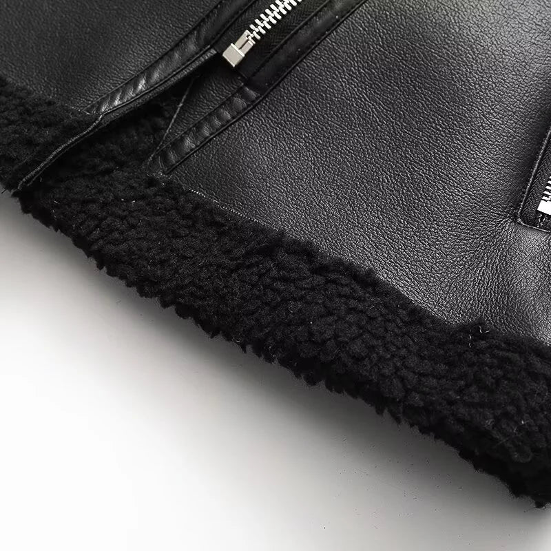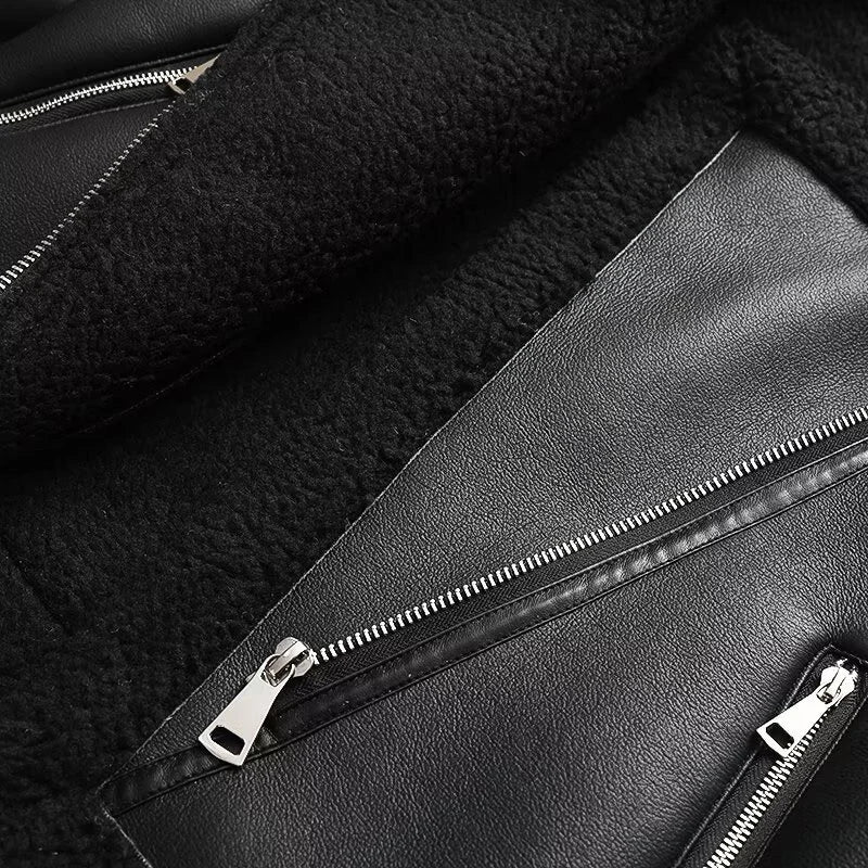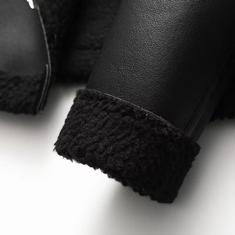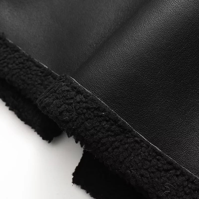Edgy yet refined, this jacket commands attention. Smooth leather meets shearling warmth in a daring cut. Perfect for nights when you crave both confidence and comfort.