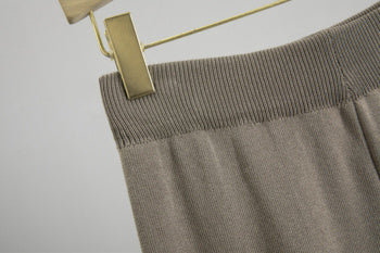 Define your winter style with the striking elegance of this black three piece set. The statement cardigan, with its bold white and grey patterns, adds a touch of modern luxury, while the knit base pieces offer sensual comfort and unadulterated class. It's a harmonious blend of art and sophisticated ease.