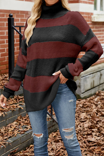 Bold black and white stripes cut with an easy turtleneck. A timeless classic reimagined, lending both strength and softness to cold-weather dressing.